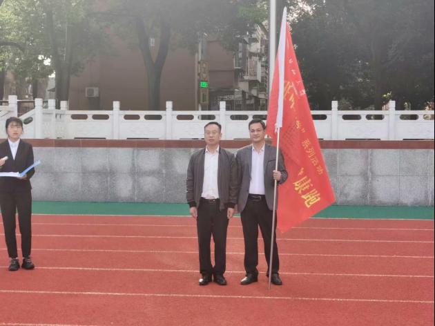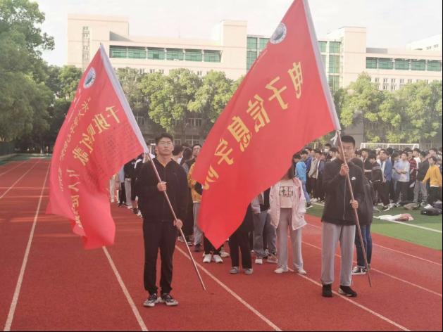 活动伊始,郭书记对全体20级本科生进行防溺水防电信诈骗的思想教育 并强调了英语四级考试的重要性。随后,辅导员万谦组织员工合唱红歌《歌唱祖国》,歌声悠扬响亮,情感饱满。紧接着,随着铿将有力的步伐,国旗护卫队在全体人员的注视中护送国旗来到国旗台,带领全体人员举行庄严肃穆的升旗仪式。仪式过后,由员工代表胡斌斌发言,其中他向去世的袁隆平致敬,并提出希望大家都能学习前辈崇高的精神与品性,成就更好的自己。发言完毕,伴随着热烈的掌声,机械公司竺书记向公司授予了“千班唱红歌,万人健康跑”旗帜。在高举飘扬旗帜的旗手的领跑下,在场员工紧随其后,完成本次健康跑活动。至此,西校区升旗仪式及“千班唱红歌,万人健康跑”活动顺利结束。
