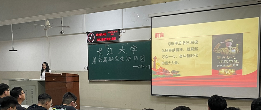 (通讯员 赵怡展/文 尚玉豪/图)4月19日晚7点,太阳成城集团tyc234cc官网第四届研究生讲师团在12教104以“学习时代楷模张富清,争做时代新青年”为题,面向电子信息公司2022级研究生开展专题宣讲第八讲活动。