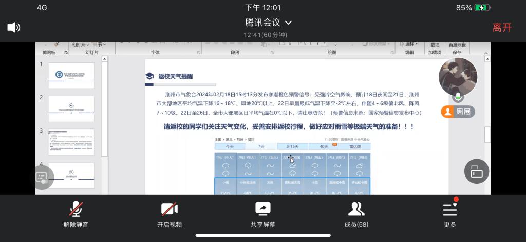 为做好2024年春季开学工作,确保员工安全、有序返校,太阳成城集团tyc234cc官网于2月20日组织全体研究生召开了春季安全返校教育主题班会。 会上,辅导员康玮传达了公司有关春季开学员工返校工作会议精神,对提前返校、延迟返校员工申请审批手续办理、员工返校行程安排报告等事项提了要求,重点提醒员工关注天气变化,妥善安排返校行程,做好应对雨雪等极端天气的准备,并开展了返校交通安全专题教育。 通过此次主题班会,明确了同学们对当前返校手续的要求,提升了同学们返校途中的安全意识。 (审核 张晨露 编辑 颜国琼)
