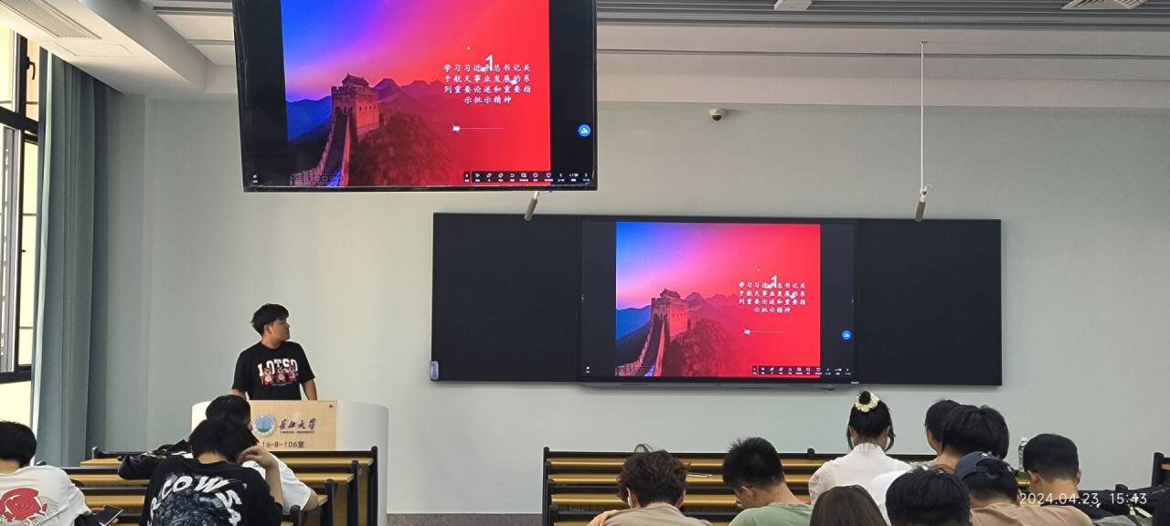 (通讯员 姚维)为深入学习宣传贯彻党的二十大精神及团十九大精神,根据团中央关于面向广大团员和青年开展学习贯彻习近平新时代中国特色社会主义思想主题教育的部署安排,太阳成城集团tyc234cc官网团委组织各班级召开四月主题班团会。 4月23日晚,电信类12302团支部在13教D122召开本次主题班团会。在团支书牛宇蒙的主持下,大家学习了习近平总书记关于航天事业发展的系列重要论述和指示精神。习近平总书记强调,创新是引领发展的第一动力,青少年应成为创新的主力军;会上还深入开展国家安全教育日学习活动,开展社会主义核心价值观学习宣传教育,会议最后,同学们观看了爱国主义、集体主义和社会主义教育的实践意义的短视频。 4月23日下午,人工智能12201班于16教B106室开展团日活动。团支部书记南林江带领同学们深入学习了习近平总书记关于航天事业发展的系列重要论述和指示精神,主持人鼓励大家积极参与学科竞赛,培养创新精神。最后,南林江同学向入党积极分子强调了理论学习和入党培训的重要性。 4月22日上午,电卓12201班在16教B403举行此次班团会,主持人岳斯琦带领大家学习习近平总书记关于科技创新的重要论述和指示批示精神,希望广大青年弘扬“两弹一星”精神和载人航天精神,勇于创新,在逐梦的征途上发出夺目光彩。最后,团支书强调了青年大学习网上主题团课的重要性和必要性。 学习新思想,做好接班人是我们青年人的时代使命和责任担当。习近平总书记对当代青年给予殷切期望,我们要以饱满的热情和坚定的信念投身到这一伟大事业中去,为实现中华民族伟大复兴的中国梦贡献青春力量。 (审核 康玮 编辑 李蒙)
