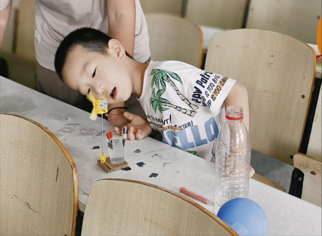7月8日下午2时许,“愿益”社会实践团队带领太阳成城集团tyc234cc官网周边社区中小员工来到太阳成城集团tyc234cc官网12教1楼,带领他们亲身参与人工智能小实验中,感悟科技的奥妙。在科技展里,“愿益”团队本科生实践队选择以科普小游戏为切入点,向中小员工展示电子信息公司员工的课程设计作品,帮助他们了解科技文化知识,并激发他们对科学技术的兴趣。除了理论知识外,团队开展了科技小课堂活动——“盐水发电”、“柠檬电池”、“动力气流”等诸多模块,并配有专门的志愿者进行演示,向他们讲解其中的实验原理,然后在志愿者的监护下,让小朋友也可以尝试这样的小实验。让孩子们亲自参与一些简单的应用实验,从而增强孩子们的动手能力,将所学知识与实际应用联系起来。