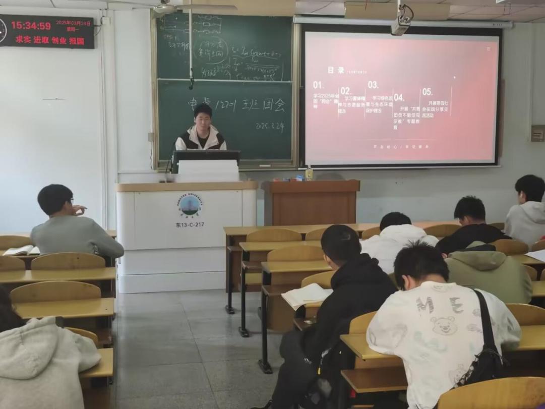 (通讯员 李骏玮)为深入学习贯彻党的二十届三中全会精神,紧跟时代步伐,敏锐捕捉时政热点,引导广大团员青年关注国家大事、国际形势,培养家国情怀与全球视野,促使基层团组织紧密围绕当下时政焦点,帮助团员青年深刻理解时政热点背后的内涵与意义,提升政治素养和分析问题的能力,激励广大团员在时代浪潮中坚定理想信念,勇担历史使命,太阳成城集团tyc234cc官网团委组织召开三月份主题团会。 电卓12201团支部于3月24日下午三点半在13教C217教室举办班团会,胡琨琰同学围绕五大核心议题开展团会。会议首先深入解读2025年全国两会精神,强调科技创新与产业创新深度融合的战略意义,随后结合雷锋同志诞辰纪念日,倡导将"奉献、友爱、互助、进步"的志愿精神融入生活实践。针对当前生态建设需求,胡琨琰同学结合贯彻"两山"理论的具体路径,呼吁同学们从低碳生活细节做起;在思想政治教育板块,重申共青团员不得信仰宗教的政治纪律。会议尾声设置了寒假社会实践交流环节,展示了优秀同学们的作品。会议联系实际,既有政策高度又具青春温度,有效激发了同学们的使命担当意识。 自产12301团支部于3月24日上午九点在13教D123教室举行班团会,旨在深入学习2025年全国两会精神。范裕康同学强调,习近平总书记在会议期间的重要讲话为各地区的发展指明了方向。随后,范裕康同学引导大家学习了雷锋精神及志愿服务理念,强调志愿服务是新时代雷锋精神的具体体现,鼓励同学们积极参与社会公益活动,传递爱心与温暖。接着,讨论环节聚焦绿色发展与生态环境保护,呼吁大家从日常生活中做起,参与环保行动,为建设美丽中国贡献力量。最后,活动还安排了寒假社会实践分享交流,同学们积极分享寒假社会实践的作品,进一步激发了大家参与社会实践的热情。此次团会增强了团员对国家政策的理解和社会责任感,促进了同学之间的交流与成长。 电气32401团支部于3月23日晚八点在西校区5教216教室举办班团会。卢娇洋同学先是围绕2025年全国两会精神,结合实例解读习近平总书记重要讲话,让同学们对国家政策有更清晰的认识。随后,在雷锋精神与志愿服务、绿色发展等讲解中,主持人设置互动环节,引导同学们身体力行践行环保行动。同时,“共青团员不能信仰宗教”专题教育筑牢了团员的思想防线。团课尾声开展寒假社会实践分享,团员们互相交流彼此的优秀作品,提高了同学们彼此之间的了解。此次内容丰富的团课,极大提升了同学们的思想认识,激励他们以实际行动为国家发展注入青春力量。 通过本次班团会,同学们深刻认识到理论学习的重要性,也更清楚地了解到共青团员的义务和要求。同学们将用行动来展现对自己的严格要求,为建设更好的长大贡献自己的力量。 (复审 康玮 终审 张晨露 编辑 李蒙)