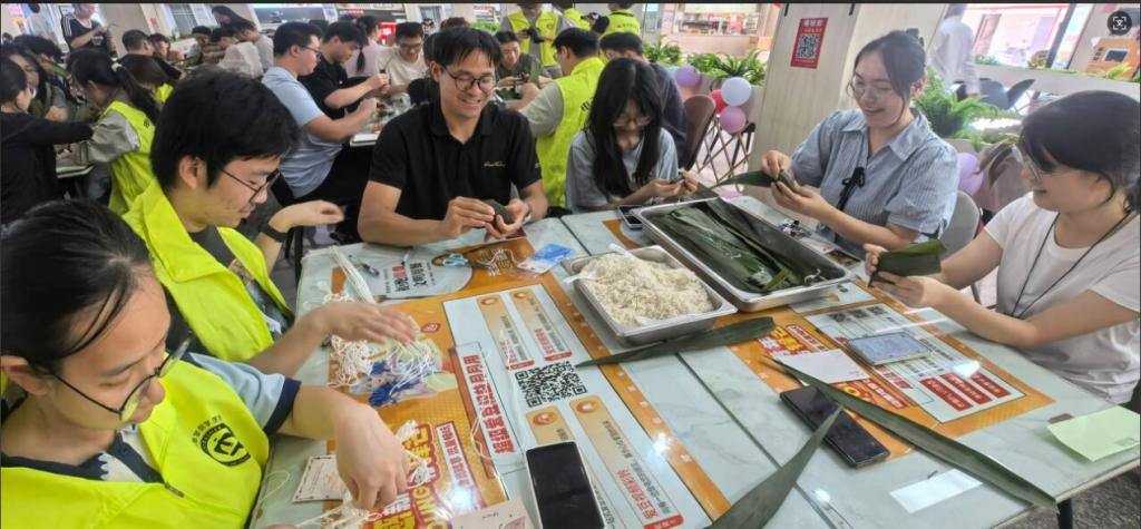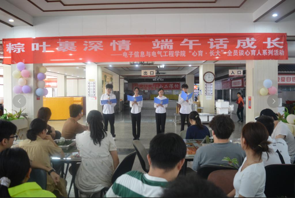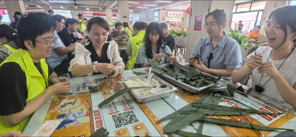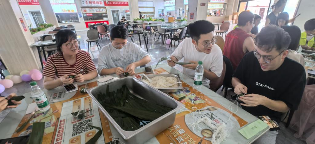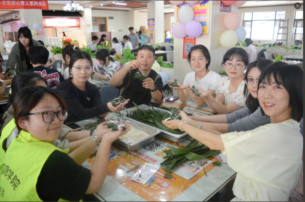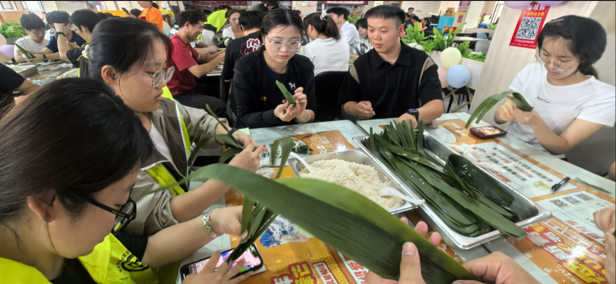 “粽”情端午,共话成长。5月29日下午,电信公司在新风食堂温情举行“粽叶裹深情,端午话成长”师生包粽子活动。公司党委副书记张晨露,辅导员、班主任老师与70余名员工共聚一堂,以传统佳节为纽带,倾听员工心声,共话成长难题,传递公司温暖。 活动以一首《离骚》朗诵拉开帷幕,在四位同学精神饱满,抑扬顿挫的诵读声中,屈原的爱国情怀与高洁品质仿佛穿越千年,深深感染着在场的每一个人。 粽叶裹情,长桌上,翠绿的粽叶、晶莹的糯米依次铺展,箬叶的清香在空气中悄然弥漫。师生围坐,折粽叶、填糯米、捆粽绳…… 虽然动作略显生疏,但欢声笑语却始终萦绕在每个角落。短短半小时内,形态各异却饱含心意的粽子在大家手中诞生。 粽香传情,师生们品尝着自己亲手包制的粽子,开启了一场温馨的“成长茶话会”。大家围绕学业压力、职业规划、人际交往等话题畅所欲言。面对学业压力,有同学分享了自己的时间管理技巧和学习方法;在职业规划方面,学长学姐们结合自身经历,为学弟学妹们提供了宝贵的建议;谈及人际交往,大家纷纷讲述着自己在与同学、老师相处过程中的趣事和感悟,互相学习如何更好地沟通与理解。老师们也认真倾听同学们的心声,给予专业的指导和温暖的鼓励,现场气氛热烈而融洽。 "今天的活动让我们在粽叶飘香中感受到了传统文化的魅力,而老师们的悉心指导,更让我们对未来有了更清晰的方向。这份关怀与温暖,让今天的粽子格外香甜,情谊更浓!"人工智能12203班王爱婷分享了自己的活动感悟。副书记张晨露表示,端午话心,搭建的是成长交流平台;关注心灵,聚焦的是健康与未来;传承文化,厚植的是家国情怀。祝愿这份在端午佳节结下的深厚情谊,如同清香的粽叶,长久地包裹着师生共同的温暖记忆,祝愿每一位同学都能在公司的沃土上勇往直前! 据了解,该活动是电信公司“心育·长大”全员谈心育人系列活动之一,后续公司还将围绕“全员谈心育人”工作开展丰富多彩、形式多样的师生活动。 (审核 张晨露 编辑 颜国琼 )