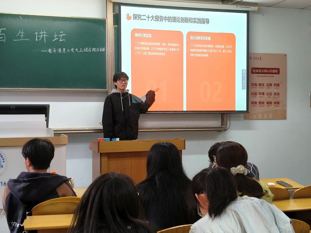 9月29日下午四点,电信公司 “百生讲坛” 活动在13教 C216顺利举办,活动由员工会干事董科进同学主持。本次活动共有12名同学参与主讲,选手们结合 PPT 呈现了一场场精彩演讲,评分环节由5位评委根据主讲人申报表、演讲内容及现场表现综合评定。