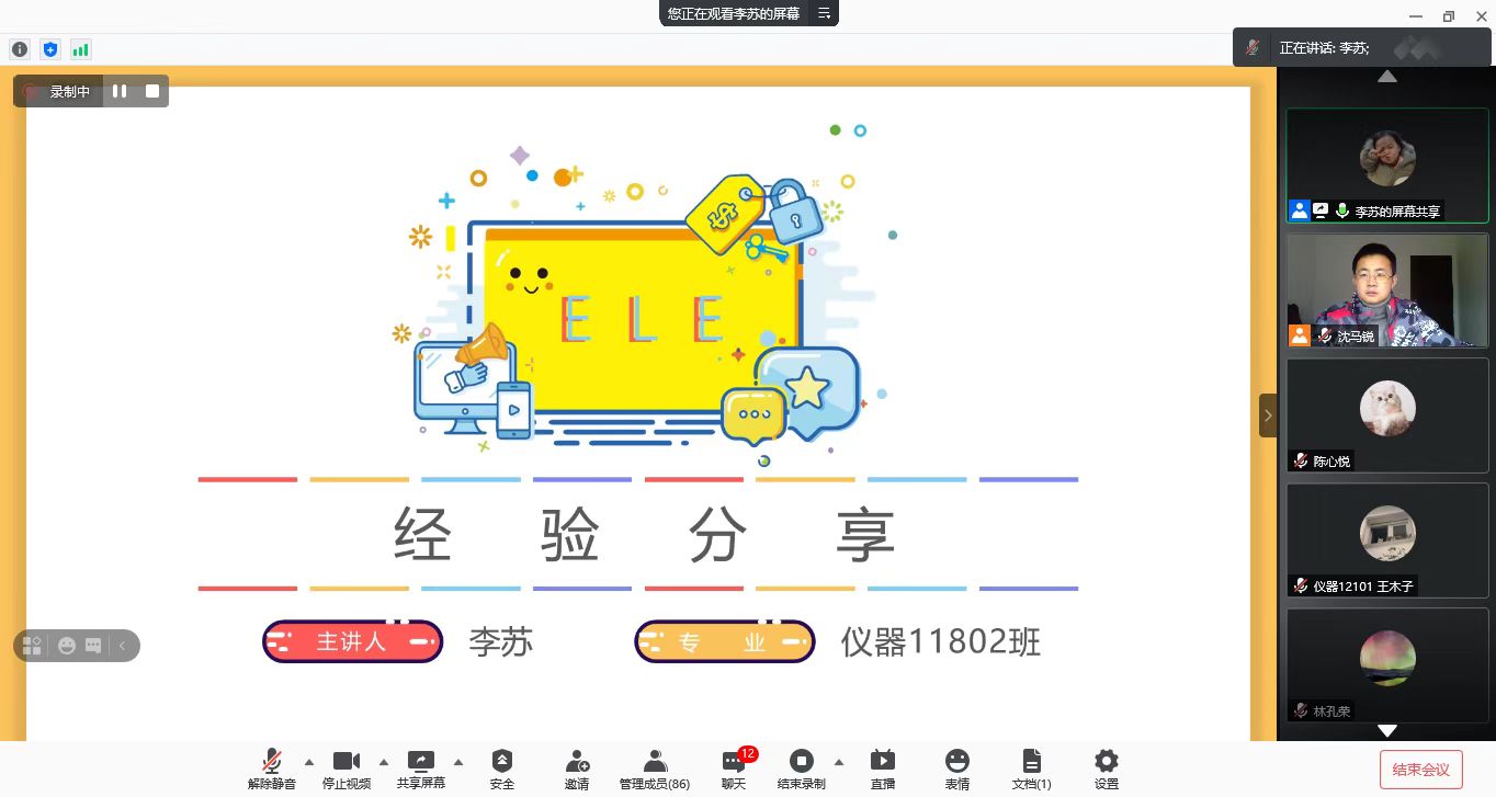(通讯员 陈心悦)为让公司同学能更全面地了解所学专业知识和更系统地规划未来职业规划发展方向, 1月26日下午,公司通过线上腾讯会议的方式开展了“教你如何玩转大学”在校学习攻略主题讲座,本次讲座邀请2018级测控技术与仪器专业的优秀员工陈志庆、李苏主讲,就业专干沈马锐老师担任此次会议主持人。