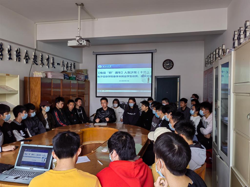会上,沈老师为大家分析了今年的就业形势。他指出,同学们要根据自身情况认清形势、量体裁衣,“没有打酱油的单位,只有打酱油的个人,只要想找工作,一定能找到满意的工作!” 他还向大家讲解目前电子信息类的一些企业现状,并向大家推荐了一些企业供大家作为参考。他强调:同学们需要结合自身实际,放低自己的姿态、脚踏实地,才能找到适合自己的工作。希望通过此次会议,能够很好的了解同学们的心声,为未就业的同学提供建议、指明方向。