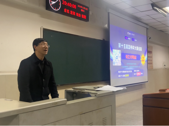 交流会上,伍鹏老师围绕“蓝桥杯”的自身指导经验,详细介绍了赛事的推进时间线及赛事特点,展示了往年参赛的优秀成绩,分析了参加比赛的原因与优势。他强调,该项赛事规模大、社会认可度高,能快速提升综合能力与学科素养,激励同学们学好相关基础知识,鼓励大家积极报名参赛。