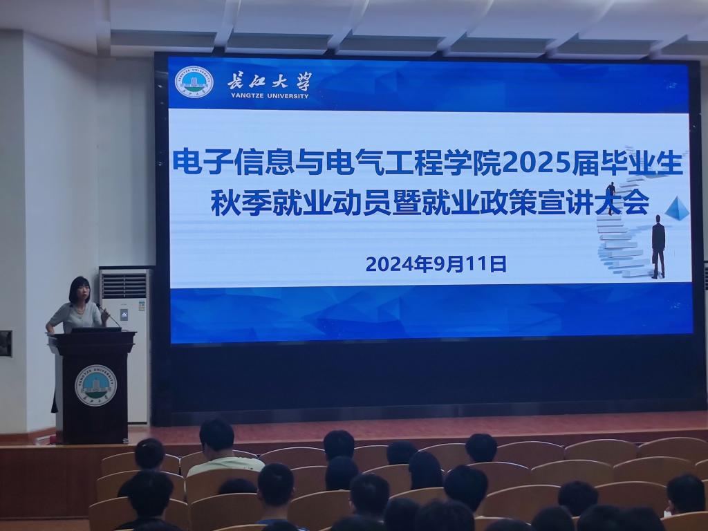 (通讯员 敖佳怡/文余博文敖佳怡/摄)9月11日晚,太阳成城集团tyc234cc官网2025届毕业生秋季就业动员暨就业政策宣讲大会在12教405报告厅召开,2025届全体毕业生到会,公司党委副书记张晨露、2021级本科生辅导员李蒙老师、公司就业专干沈马锐老师参加会议。