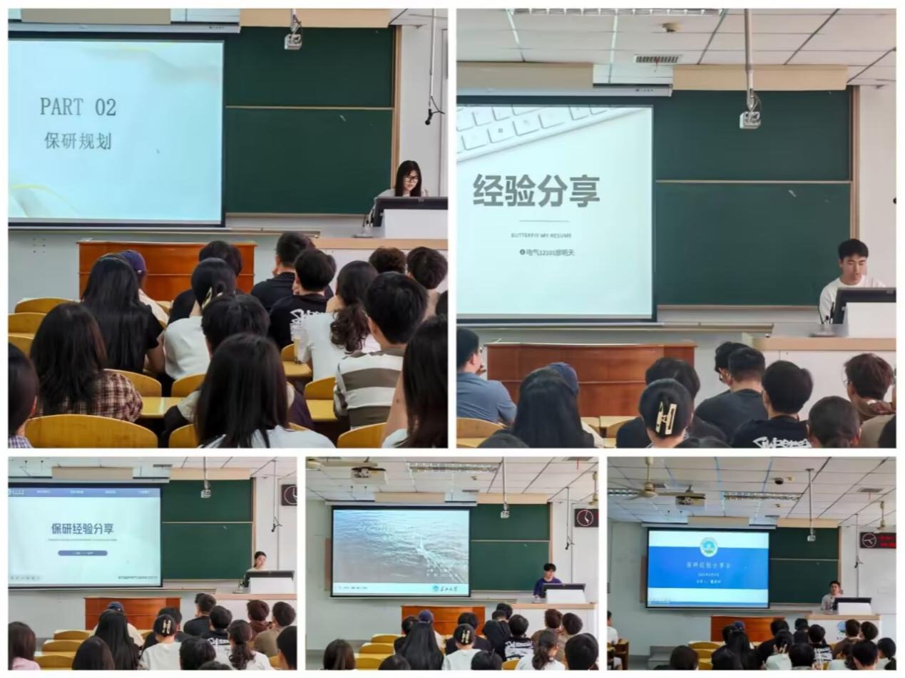 (通讯员 谢奕帅)为助力2022级学子科学规划升学路径,明晰保研政策与要求,5月8日,公司于13教B210教室举办“保研经验分享交流会”。活动特邀廖明天、程卓玲、郑卓宇、邓豪杰、戴凌祥5位2021级成功保研员工担任主讲嘉宾,本次活动吸引了50余名员工到场学习交流。会议由2022级本科生辅导员沈马锐主持。