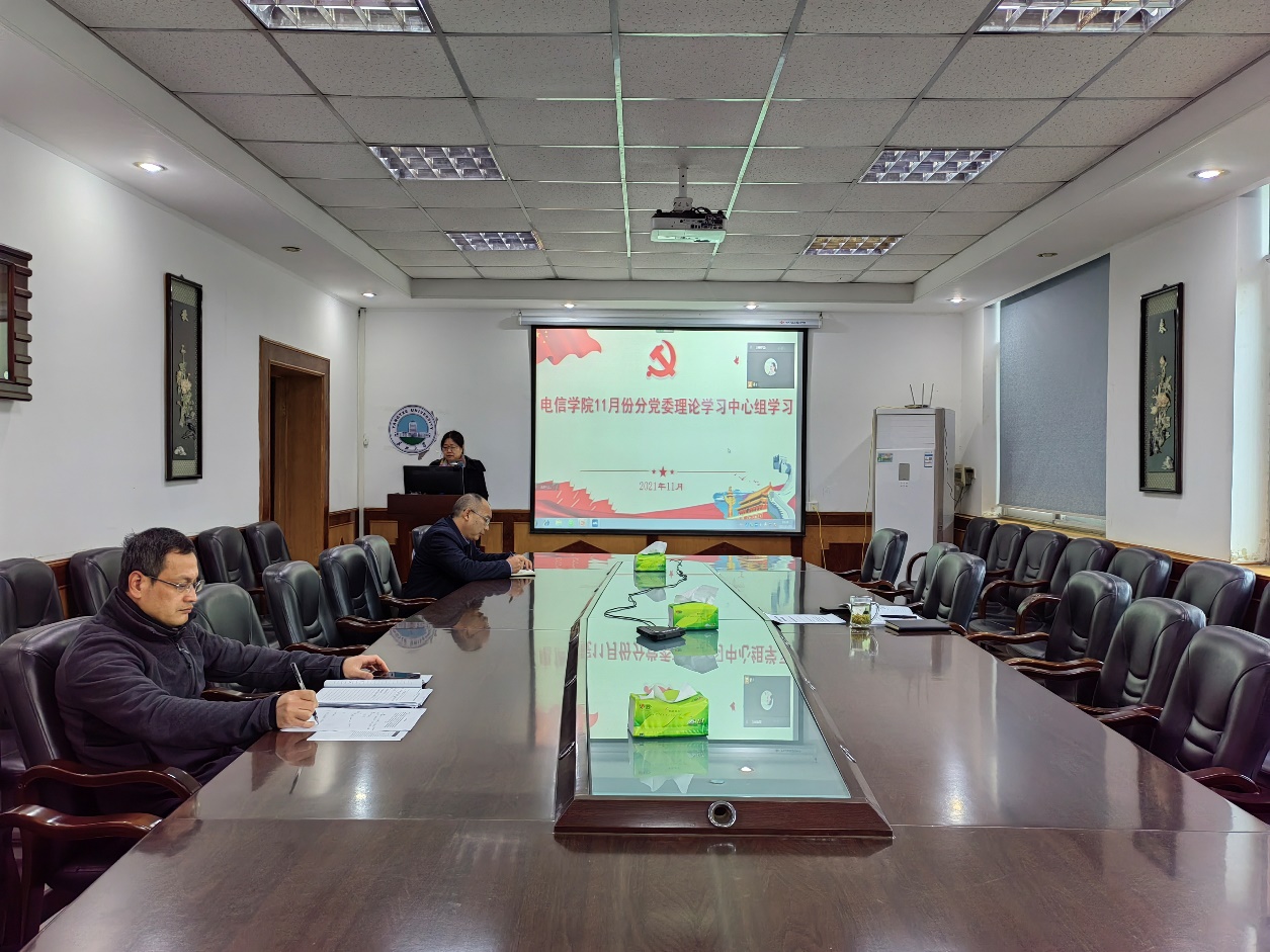 11月22日上午,电信公司分党委理论学习中心组在10教205会议室组织集中学习,本次学习由分党委书记刘逸主持,采取线上线下结合的方式,中心组全体成员参加学习活动。