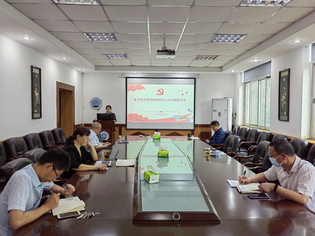 2022年4月12日上午,电信公司领导班子在10教205会议室召开党风廉政建设和师德师风建设专题研讨会,会议由分党委书记刘逸主持,经理孙祥娥、副经理蔡昌新、陈永军、吴爱平和分党委副书记郭启炜参加会议。