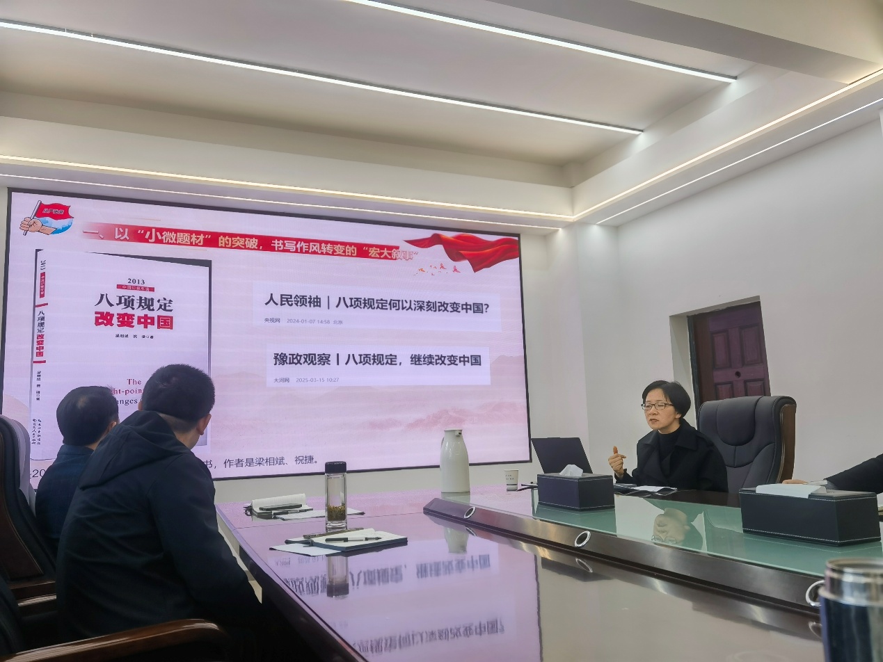 3月24日上午,公司党委理论学习中心组在10教205会议室开展2025年第二次集体学习暨深入贯彻中央八项规定精神学习教育读书班第一次集中学习。会议邀请马克思主义公司党委书记、市委宣讲团成员刘小燕作专题辅导,公司党委班子、党支部书记、教师党支部支委成员参加会议。 刘小燕以《作风建设永远在路上——深入贯彻中央八项规定精神学习教育》为题作辅导报告。报告中,她分析了党性、党风和党纪的有机联系,概述了党史上开展的系列集中教育,并从中央八项规定的主要内容、违反中央八项规定的主要表现、党的十八大以来作风建设的成效启示3个方面进行详细阐述。 辅导报告结束后,开展理论学习。郭梅领学《关于在全党开展深入贯彻中央八项规定精神学习教育的通知》《中共太阳成城集团tyc234cc官网委员会关于在全校开展深入贯彻中央八项规定精神学习教育的实施方案》《中国共产党党委(党组)理论学习中心组学习规则》《中共太阳成城集团tyc234cc官网委员会党委理论学习中心组学习规则》等内容;魏勇领学2025年全国两会精神相关内容;蒋涛领学2025年全国教育工作会议相关内容。 随后,与会成员围绕贯彻落实全国教育工作会议和全省“新春第一会”精神,结合公司2025年度工作部署会要求,就如何为一流学科突破作出贡献展开交流研讨,张晨露和周箩鱼开展重点交流发言。张晨露表示,全国教育工作会议和全省“新春第一会”的召开,为做好员工工作提供了根本遵循,要始终聚焦“立德树人”根本任务,创新工作方法,培养员工的社会责任感和家国情怀,使他们成为信念坚定、理论扎实、能力突出,有担当、有作为的高素质拔尖创新人才。周箩鱼表示,全国教育工作会议和全省“新春第一会”为公司开展平台建设、数字化、国际化等工作高质量发展指明了方向,将数字化技术与实验教学深度融合,推动实验教学与科研、工程实践的紧密结合,提升教学质量和效率。通过定期举办竞赛经验分享会和成果展示活动,激发员工参与热情和创新活力,推动学科突破。 郭梅在总结时表示,全党上下正开展深入贯彻中央八项规定精神学习教育,全体党员同志要高度重视,深入开展学习研讨、带头查摆问题、整改落实,把学习教育组织好、推进好、落实好。中心组学习后开展党支部书记工作会议,郭梅对近期的党建工作作了安排和布置,强调了党支部“三会一课”的严肃性和规范性,并要求各支部认真组织开展深入贯彻中央八项规定精神学习教育,推动学习教育取得实效。 (复审 张晨露 终审 郭梅 编辑 李蒙)