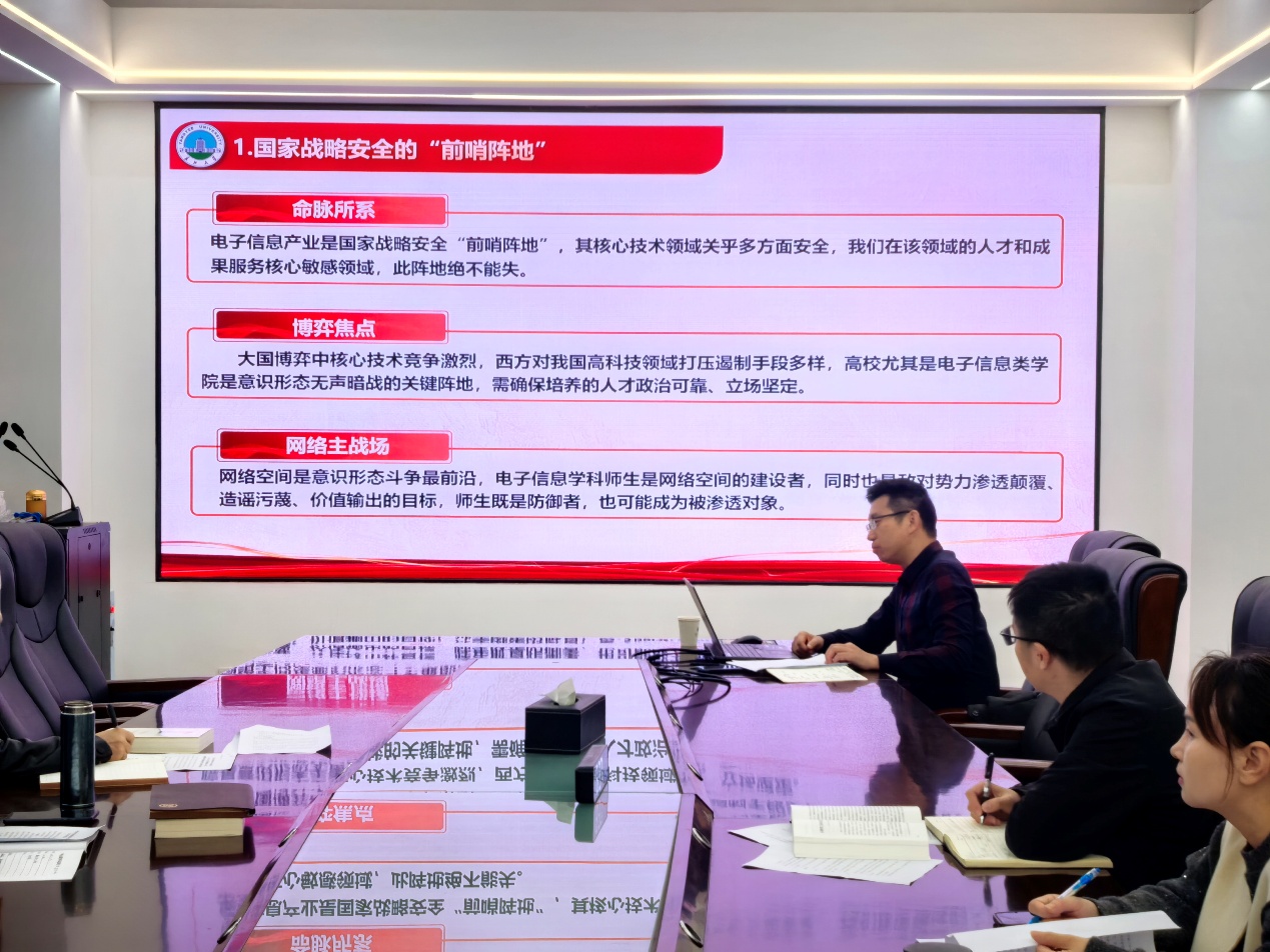 10月30日上午,公司党委召开2025年下半年意识形态工作专题会议,公司全体领导、党委委员、各党支部书记参加会议。 会议集中学习了习近平总书记关于总体国家安全观的重要论述,传达了上级关于意识形态工作的有关要求。集中学习后,党委宣传部副部长文启华以《筑牢思想防线 履行时代使命》为题开展意识形态工作专题辅导。他主要围绕高校意识形态工作的极端重要性与特殊性、公司意识形态工作的突出风险点和筑牢公司意识形态安全屏障三方面展开,进一步指明了公司在开展意识形态工作时需要严把关的各种情况,对压紧压实责任、筑牢公司意识形态安全屏障提出了具体要求。 学习结束后,与会人员就“如何守住意识形态底线、防范化解风险,为推动公司高质量发展贡献力量”开展交流研讨,党委副书记张晨露、副经理周箩鱼分别从员工工作和教师教学的角度开展重点发言。 (复审 张晨露 终审 郭梅 编辑 李蒙)