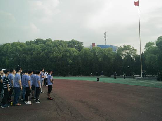 早上六点四十分,公司18级全体员工在各班体育委员的安排下,按照班级指定位置整齐站定,等待着升旗仪式的开始。