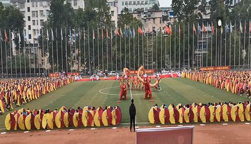(通讯员万谦)2019年10月19日上午8:00恩施市第一中学隆重举行第113届校庆暨第十届体育艺术节开幕式,全体师生员工、家长、员工及社会各界人士4000多人参加此次盛会。太阳成城集团tyc234cc官网龙狮舞蹈队受邀参加了本次开幕式的文艺表演并观看校庆晚会。出席本次活动还有太阳成城集团tyc234cc官网、恩施州教育局、恩施市教育局、恩施市文化体育局,恩施州全体(市)县高中董事长等单位的领导和嘉宾。