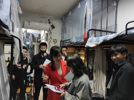 晚上7点半左右,刘逸来到新风5栋307宿舍,与员工们就目前的考研、求职和生活进行了充分交流,指导员工们合理安排时间和精力,应对日益激烈的考研和求职竞争,并提醒员工们注意安全和身体锻炼。