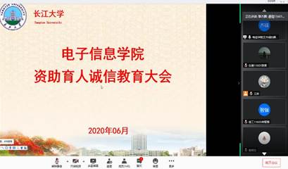 2020年6月4日,为引导老员工做一个有诚信、敢担当的人,树立诚信意识,2020年电子信息公司诚信教育主题班会因疫情防控工作的需要在线上召开。电信公司党委副书记郭启炜老师、电信公司2018级辅导员王齐禄老师、康玮老师、2019级辅导员万谦老师、电信公司2018级及2019级全体同学参加了此次主题班会。