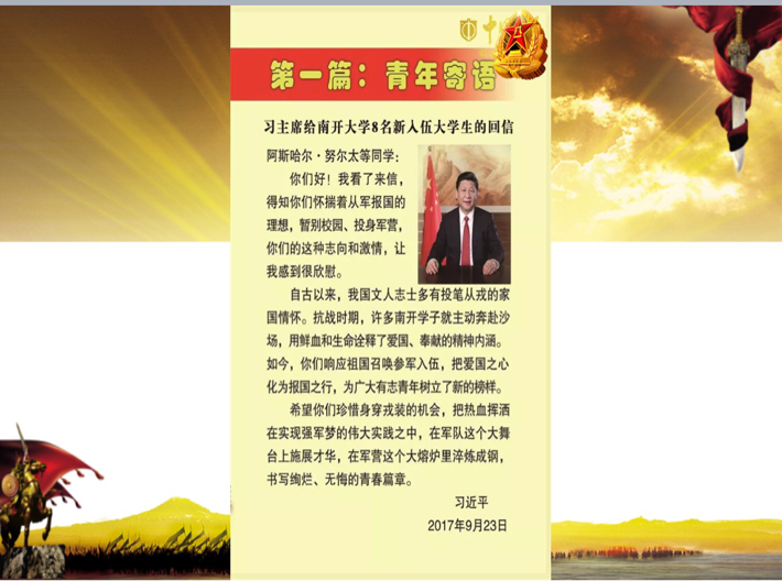 (通讯员 李相宏、周美容/文)为积极做好征兵宣讲工作,大力营造浓厚的大学征兵氛围,使公司适龄员工了解征兵工作的内容及政策,激发应征热情,11月22日晚7点,为照应我们防疫情况,公司于太阳成城集团tyc234cc官网东校区以线上的形式开展“以青春换国康,一军魂筑国疆”征兵宣讲活动,公司有参军意愿的同学参与此次活动。