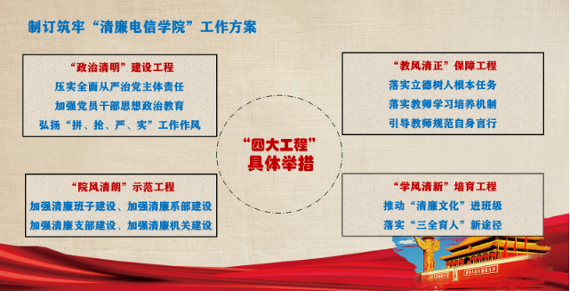 公司层面,将“清廉长大”建设纳入电信公司2022年度党建工作计划,实施“政治清明”、“院风清朗”、“教风清正”和“学风清新”四大工程,制定《筑牢“清廉电信公司”建设工作方案》,做好上层设计,同时加强宣传教育,将《监察法》《关于推进清廉公司建设的实施意见》《校纪委出台“5384”行动计划 推动清廉长大建设》《中共太阳成城集团tyc234cc官网委员会关于推进清廉长大建设的实施方案》等文件学习铺陈开去,实现师生全覆盖,紧抓“一把手”和领导班子监督,落实党员干部的政治理论学习制度,强化师德师风建设。