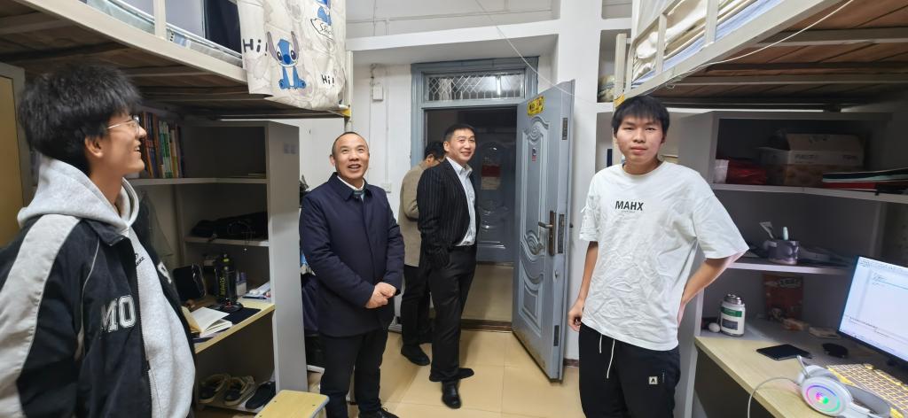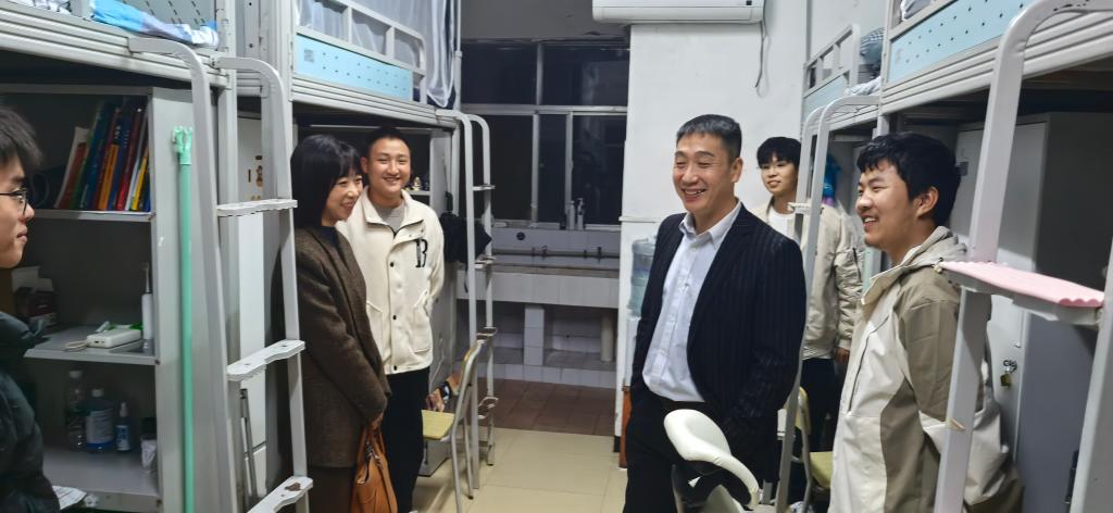 会议结束后,本科生院经理龚权、电信公司经理罗明璋、党委副书记张晨露在年级辅导员朱锐老师的陪同下到员工宿舍看望慰问员工。