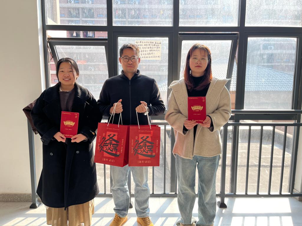手提袋印制“逢考必过”“成功上岸”等加油语,真诚祝愿每一位考生考试顺利、研途坦荡。红色定制笔记本封面印有公司logo及“创新电信 智领未来”标语,祝福大家“顶峰相见”。定制版可乐刻印员工姓名以及“金榜题名 乘风破浪”等祝福语,寓意“百事可乐,一切顺利”。“逢考必过”幸运杯祝福考研学子诸事顺遂,一战成硕。另外还精心挑选了10张荆州博物馆联名的明信片,祝福大家成功上岸。