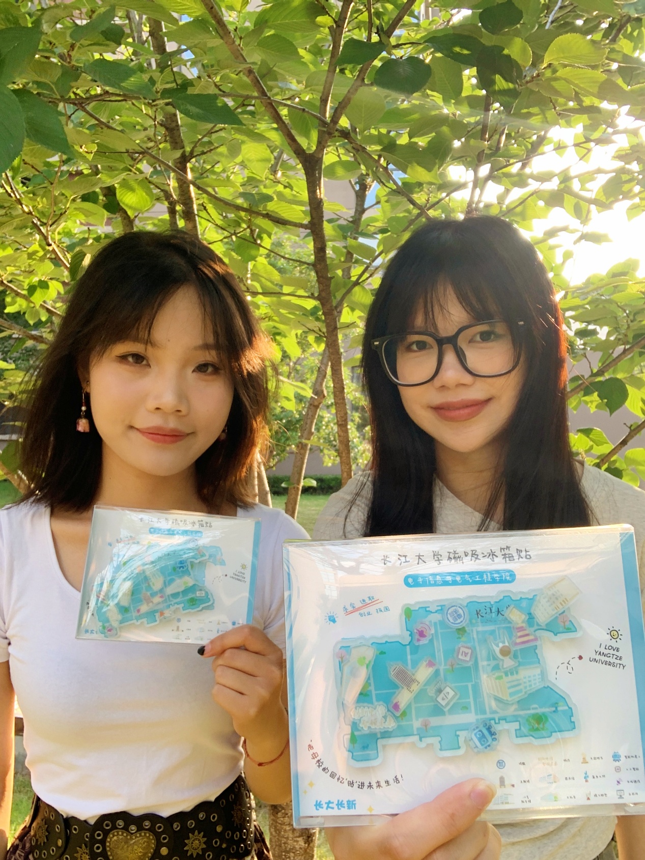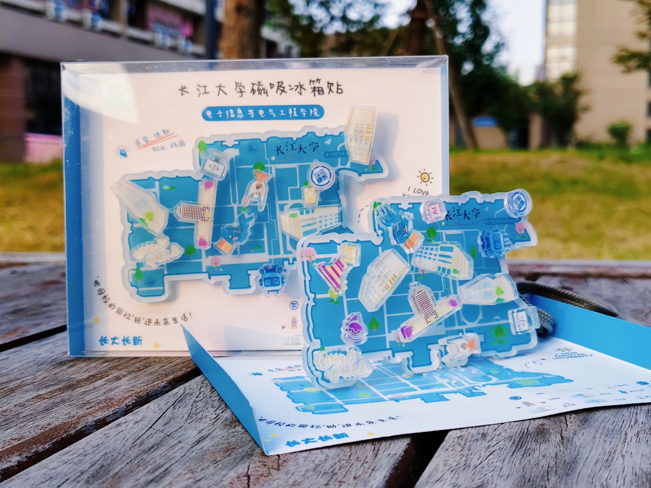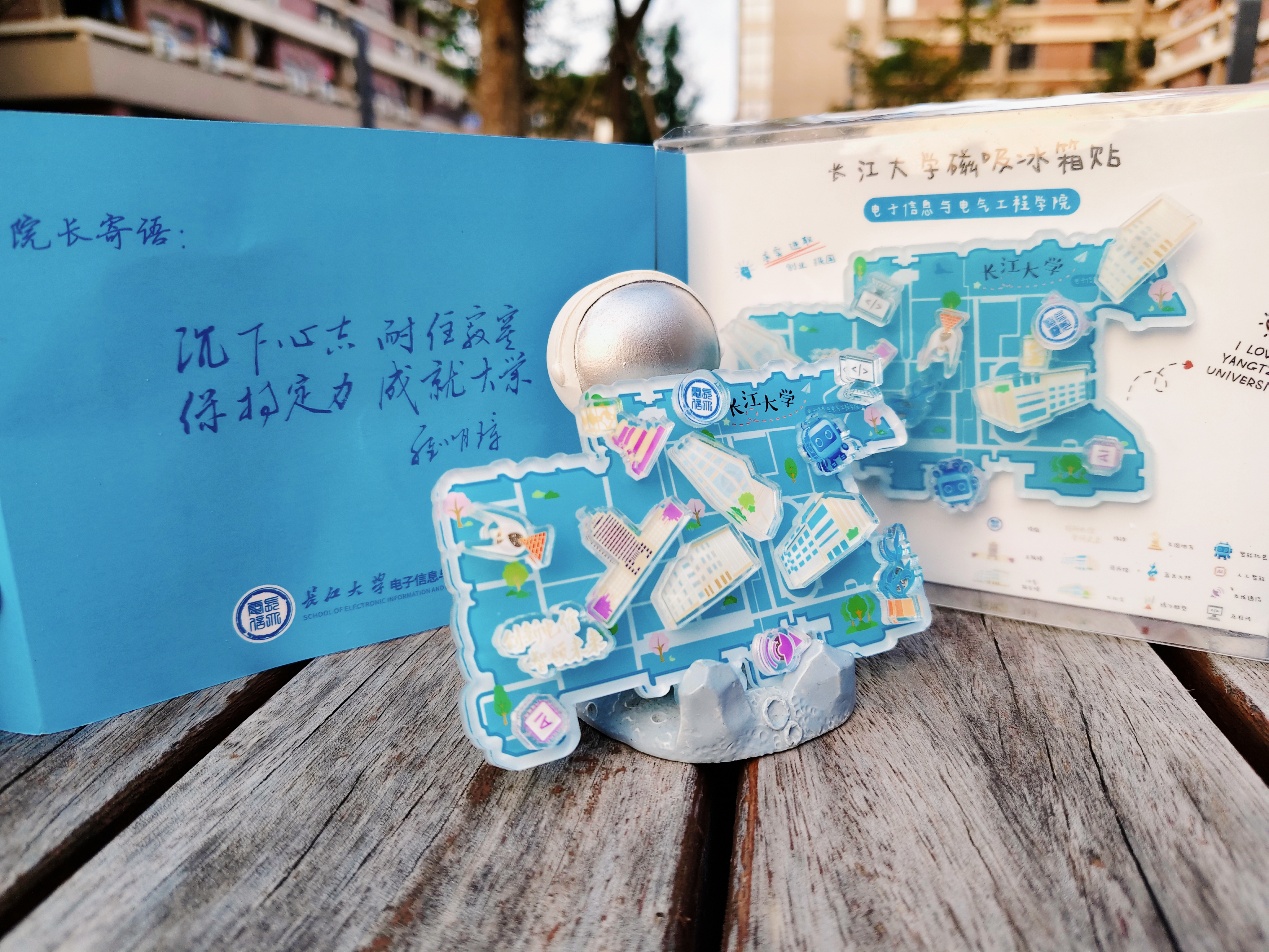 公司精心设计、定制包含公司和公司各类元素的主题冰箱贴,将校园标志性建筑与公司特色融为一体。这份兼具纪念意义与实用价值的礼物,寄托着"常回家看看"的深情期盼。其间还印刻着经理的寄语:沉下心志、耐住寂寞,保持定力、成就大业,字里行间寄托了对毕业生的深情厚望。