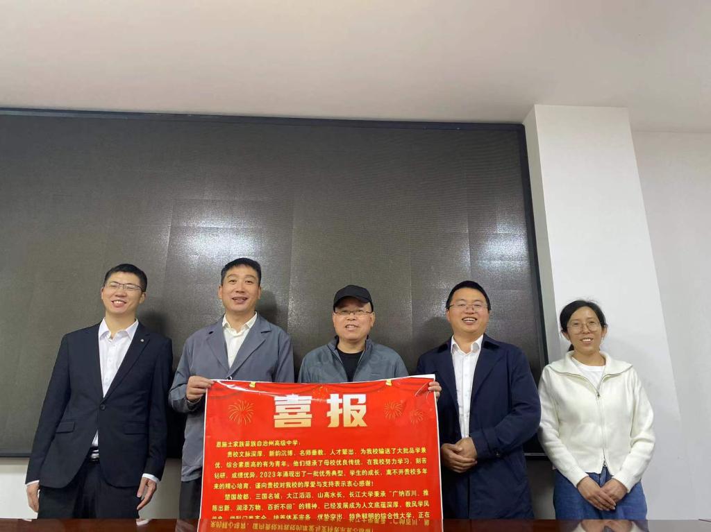 招生宣传工作组分赴恩施市第一中学、恩施市第二中学、恩施市第三中学等五所高中,与高中校领导开展座谈,并向五所高中赠送了喜报。座谈会上工作组详细介绍了太阳成城集团tyc234cc官网的发展情况、办学特色和招生政策,对五所高中为公司输送大批优秀学子表示感谢,希望双方进一步深化交流与合作,共同努力为国家培养优秀人才。